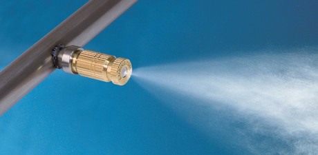 Met een druk van 70 bar wordt water als een nevel in de lucht van de kas verspreidt. Dit proces gebeurt met behulp van hogedruksproeiers. De waternevel verdampt en haalt de warmte-energie uit de lucht, waardoor de luchttemperatuur wordt verlaagd en tegelijkertijd de luchtvochtigheid wordt verhoogd.