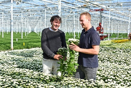 Tholen - Twee weken geleden begon kwekerij Monnikenwaard met de aanvoer van de Santini Maverick White een nieuwe variëteit uit de veredelingsstal van Floritec. “We hebben er allebei veel tijd en energie in gestoken en de uitkomst is een mooie frisse witte bloem met een groen hart, ongeëvenaarde teelteigenschappen en bovendien een uitstekend vaasleven”, vertellen kweker Maurice van Tuijl en Harry Boers van Floritec. Met beide heren maken we een ronde over de tuin en spreken over de nieuwste aanwinst.