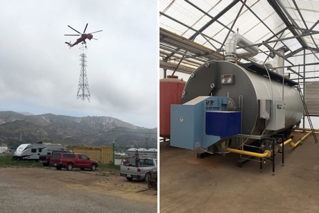 "We don't mess around", grapt Peter. Op rechts de boiler van een warmte-installatie in Carpinteria.