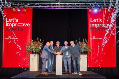 Drie-twee-één! Vijf handen drukken gezamenlijk de knop in, waarna met een luide knal de confettislierten de ruimte in worden geslingerd. Wethouder Paul Sanders gaf hiermee het officiële startschot voor Royal Brinkman Maasbree geholpen door vier Royal ‘Brinkmannen’.