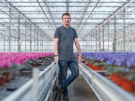 Sinds oktober 2018 mag Luuk van der Burg zich eigenaar noemen van potplantenkwekerij Vlasman in Mijdrecht. ‘De “schuld” van Richard Bremmer, verkoopadviseur van BVB Substrates’, lacht hij. ‘Hij bracht mij in 2015 met de vorige eigenaar in contact en kijk eens wat daarvan gekomen is.’ De 32-jarige ondernemer is blij met de stap die hij heeft genomen en is trots op zijn bedrijf. ‘Een kwekerij met een prachtig product: Saintpaulia. Een plant waar je toch vanzelf vrolijk van wordt?’