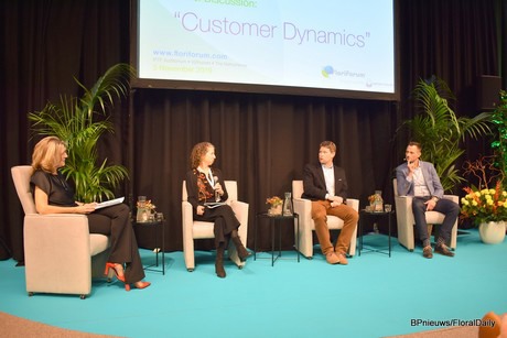 Trends in de markt werden uitgebreid overdacht, door het panel, waar ook Kate Penn, van de Society of American Florists plaatsnam, maar ook door het publiek. De hang naar lokaal geproduceerd product bijvoorbeeld. Is dat een gevaar voor de sector? Zonder wereldmarkt kunnen we allemaal opdoeken, klonk vanuit de zaal. Die wereldwijde handel hebben we nodig. Dennis van der Lubbe ziet de trend ook maar bestempelt het nog niet als gevaar. Zolang je maar een verhaal blijft vertellen. Vertel de consument maar waarom de Keniaanse bloemen beter zijn dan de lokaal geteelde. Hetzelfde geldt voor duurzaamheid. Het gaat er niet om dat je duurzaam handelt, hoe idealistisch ook, maar vooral dat men weet dat je dat doet.