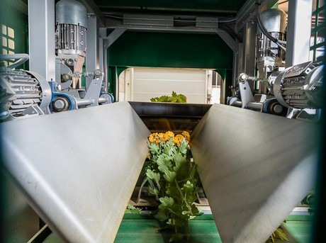 De Flora V-Master is een nieuwe oogstoplossing, voorzien van V-klapbanden. Harken en schuiven van de bloemen is hiermee overbodig geworden.