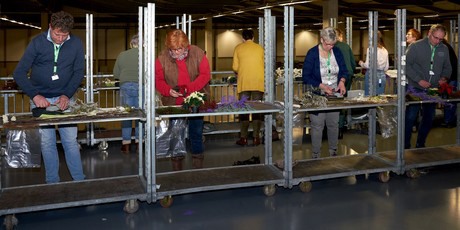 Daarna liet Helene Verhoeff tijdens haar workshop ‘Het belang van etaleren’ aan de hand van mooi ingerichte stijlkamers zien dat er met de klassiekers Amaryllis en Poinsettia veel meer mogelijk is dan je zou denken. “Combineer Poinsettia eens met Asparagus of Eucalyptus, voor een moderne uitstraling. Amaryllis verkoop je ook nog na de kerst, als je hem anders positioneert. Zet geen dichte Amaryllis in je etalage maar bloeiende, zodat je klant alvast ziet wat het gaat worden.” Uiteindelijk gaf ze de bloemisten dit motto mee: “Verrassen is verleiden is verkopen!”