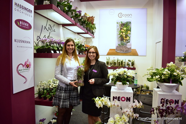 De zussen Hassinger tijdens de IPM Essen 2019 in Duitsland, waar ze de Cocoon Orchids voor de eerste keer toonden.