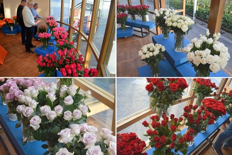 Alle rozen komen uit Kenia en zijn, op een enkele bos na, nog niet commercieel verkrijgbaar. “Je moet het zien als een mini-auto RAI voor rozen”, legt sales manager Bert Middelkoop uit. “Wil je een keuze maken, dan moet je alle showrooms af, maar op de RAI staan ze allemaal naast elkaar. Zo is het ook met rozen; iedereen heeft mooie bloemen, maar pas door ze fysiek naast elkaar te zetten, kun je echt vergelijken.”