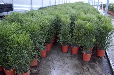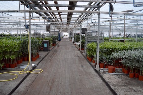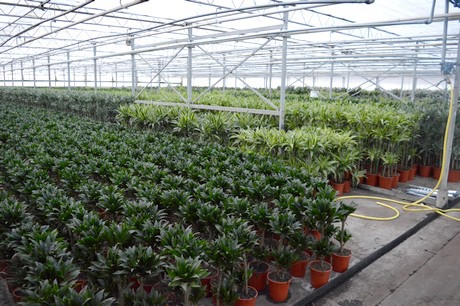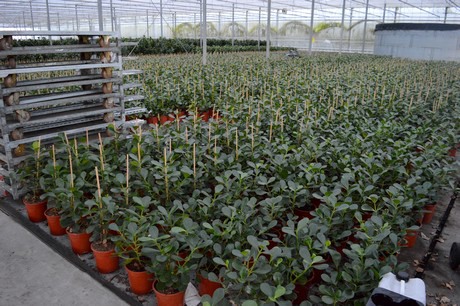 Met een mooi assortiment ficussen, dracena, clusia en sanseveria is de kwekerij van Ron voor de plantenhandel een adres om niet aan voorbij te gaan. Hij combineert zogenaamde ‘importteelten’, dat wil zeggen planten die hij met name uit Midden Amerika haalt (m.n. sanseveria en dracena, en ook een paar kleinere producten als de potloodplant), met planten die in onze contreien vermeerderd worden, met name de ficus. Elke week komt er wel een container binnen, hoewel die frequentie natuurlijk met het seizoen wat wisselt.