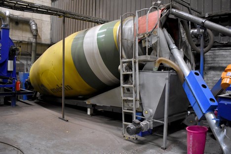 - Dit wordt gewassen, in deze turbine, zónder dat daar een druppel water aan te pas komt -