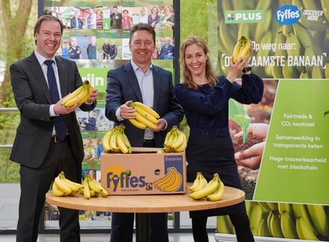 Een tweede belangrijke stap op het gebied van duurzaamheid is de introductie van blockchaintechnologie binnen de bananenketen. Via een QR-code op de banaan ziet de consument precies welke route is afgelegd van plantage tot winkelmandje.