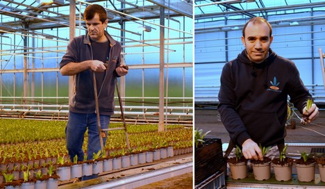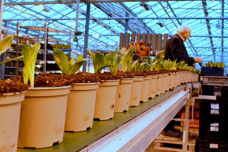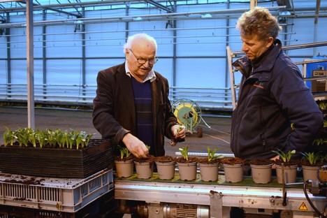 Tholen - Op de tuin van Kwekerij Michelle van Dijk zit de in onze branche welbekende heer Pleun van Dijk, op de respectabele leeftijd van 77 jaar, nog regelmatig met zijn vingers in de aarde. Letterlijk. Toen we onlangs kwamen aanwaaien, was hij samen met Martin Vermeer bezig een nieuwe partij Ornithogalum op te potten.