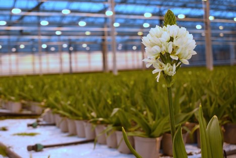 De exclusiviteit van het product en de kleinschaligheid van de onderneming maken dat hij er goed uit de voeten kan. Ornithogalum, in goed Nederlands zuidenwindlelie of vogelmelk, is bovendien een plant met een handleiding. In het Duits schijnt hij ‘kwekersverdriet’ te heten, maar de teeltman ziet natuurlijk ook de uitdaging. De potplant wordt in de zomermaanden vanuit weefselkweek geleverd in plugs en moet dan worden opgepot. Het plantmateriaal komt uit Israël, omdat het volgens Pleun in deze tijd van het jaar alleen maar daar te krijgen is. In het voorjaar wordt er geleverd en kan de plant zowel in de vensterbank als in de tuin worden opgezet. “Het is een mooie plant met een witte kop erop, vandaar dat wij het Milky Way hebben genoemd.”