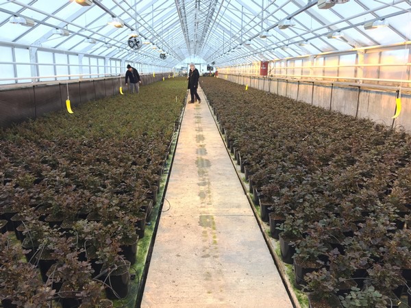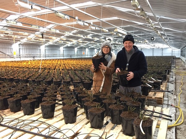 Veredelaar Rosa Eskelund met een van de Noorse kwekers die voor de Noorse keten Hageland bloemen teelt