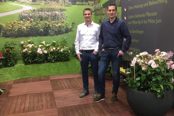 Dennis en Micheal de Geus van Select Breeding met hun nieuwe productlijn van de patio- en tuinrozen.
