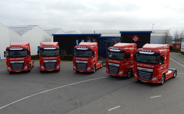 Het gaat om vijf gloednieuwe trekkers van het type DAF XF480, uitgevoerd in de kenmerkende rode kleur van Van Zaal Transport. De wagens zijn geleverd door TB Truck & Trailer Service uit Utrecht. “Een modern, jong en veilig wagenpark is voor ons heel belangrijk. Daarom investeren wij ieder jaar in nieuwe wagens. Bij onze keuze voor nieuw materieel spelen milieuvriendelijkheid en veiligheid een grote rol”, vertelt Marc Smit, wagenparkbeheerder bij Van Zaal Transport. “Deze wagens hebben zuinige motoren en veel veiligheidsopties. Bovendien is dit merk geliefd onder onze chauffeurs, wat ook een belangrijke reden is om voor DAF te kiezen”, legt Marc uit.