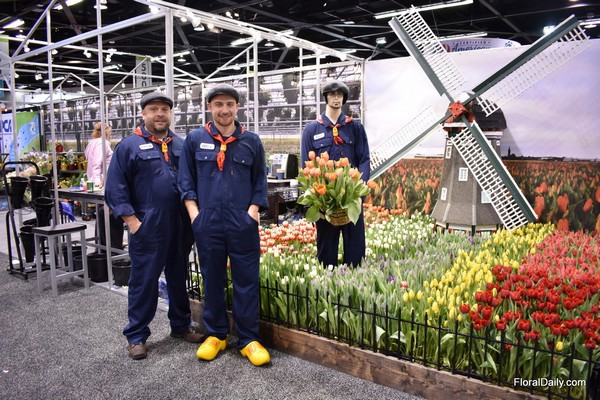Larry Huff en Alexander van Hoekelen in traditionele Nederlandse kleding op de PMA Fresh Summit in Anaheim (CA) in oktober 2019.