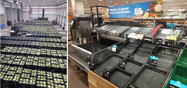 Foto rechts: Leeg AGF-schap bij Albert Heijn. Foto Robert van den Berg
