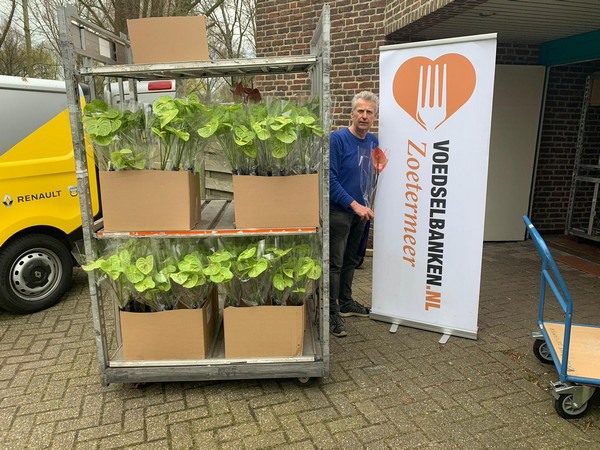 Nederlandse snijanthuriumkwekers doneren deze week duizenden anthuriums aan de voedselbanken om met hun bloemen, die anders vernietigd zouden worden, zoveel mogelijk huiskamers op te fleuren in deze moeilijke tijd. De kwekers doneren honderden boeketten aan de voedselbank Westland en Zoetermeer, zodat ruim 400 gezinnen het thuis wat gezelliger kunnen maken.