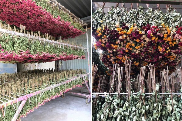 Je kan niet zomaar rozen van de klok weghalen en deze drogen, want dan zitten ze vol met botrytis. Het hele proces moet in het teken staan van het creëren van droogbloemen, legt Pascal uit. Het begint bij het kiezen van het juiste ras. Dan begint het productieproces, die plaatsvindt in Afrika. "We hebben naar verschillende rozen uit verschillende landen gekeken, maar de Afrikaanse roos blijkt het meest geschikt te zijn." Ook in het productieproces moet rekening worden gehouden dat de roos uiteindelijk gedroogd zal worden. "Tijdens de teelt, mag er bijvoorbeeld geen water op de roos komen, dat is namelijk funest voor het droogproces." Dan het oogsten. Dit moet ook in een ander openingsstadium dan voor een verse roos. "Omdat de knop slinkt bij het droogproces moet de roos open genoeg zijn, maar niet te ver, anders verpulveren de bloemen." Dan, in een gesloten koelsysteem, worden de rozen naar Nederland verscheept en in Aalsmeer gedroogd. "Na het testen in vele landen blijkt dat deze fase toch in Nederland plaats moet vinden omdat de bloemen toch een bepaald percentage luchtvochtigheid nodig hebben die er niet is rond de evenaar. Door dit proces behouden de vele verschillende kleuren rozen in ons assortiment hun shiny kleur en hebben ze een houdbaarheid van ongeveer een half jaar tot 8 maanden."