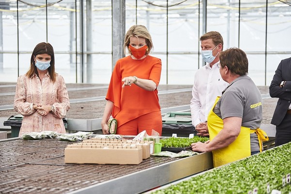 Gisteren bracht koningin Mathilde een bedrijfsbezoek aan Gediflora. Ze ging er in gesprek met verschillende vrouwelijke ondernemers in de sierteeltsector. Daarna kreeg ze een rondleiding van Elien Pieters.