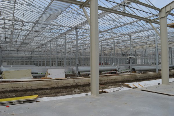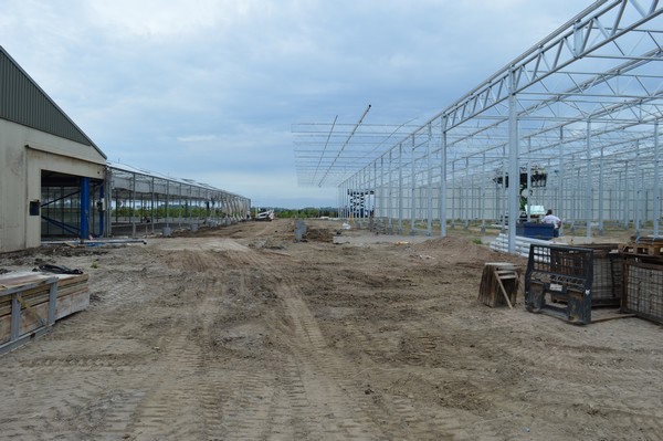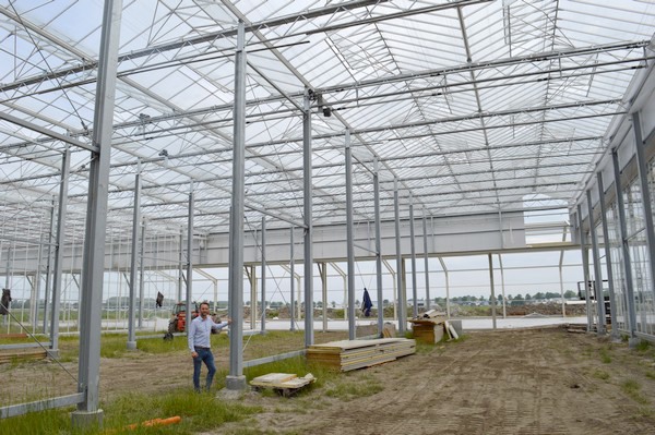 Bij Van Bentem Sierteelt is goed te zien hoe de nieuwbouw dadelijk aan moet gaan sluiten op de oude kas.