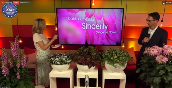 Tholen - De FleuroStar 2020 gaat dit jaar naar Syngenta Flowers Europe voor hun Dahlia Sincerity. In het online live event dat gisteren plaatsvond, namen Syngenta Flowers' Dahlia veredelaar Ronald Snijder en Global Head of Flowers Michael Kester de prijs (op gepaste afstand) in ontvangst van Fleuroselect voorzitter Karol Pawlak en Secretary-General Sally van der Horst. Deze prestigieuze prijs wordt eenmaal per jaar uitgekeerd aan die introductie die het duidelijkst de WOW-factor heeft.
