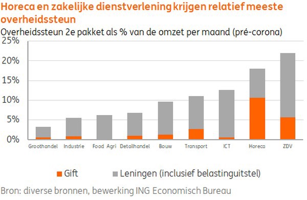 Meeste overheidssteun voor horeca en zakelijke dienstverlening