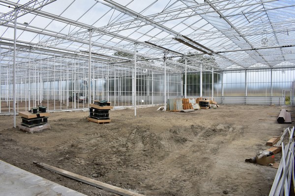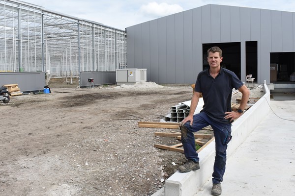 Na een wat moeizame start van de bouw zit nu de wind er goed onder. Het moeizame kwam door een winter met veel regen. Tot half maart kon je er niet lopen want dan stond je tot je knieën in de modder. Daarna droogde het in een paar mooie weken op maar werd de grond zo hard als beton. De kas is glasdicht en men is doende alle techniek te installeren. Zo komt er een dubbel scherm in te hangen en zijn zojuist de luchtbehandelingskasten opgehangen. “Deze maken het mogelijk de kas te ontvochtigen, wat zeker in de herfst voordeel op zal leveren. We leren op een geheel nieuwe manier telen, maar met deze investering zullen we een streepje voor hebben op de concurrentie.”
