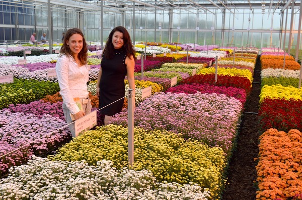 Diversiteit is dan ook een van dé grote thema’s in chrysanten, zo vertellen Lisanne Borst en Warja Abrosimova, bij de veredelaar verantwoordelijk voor de marketing. Elk jaar wordt die groter; kwekers willen zich kunnen onderscheiden met nieuwe kleuren en vormen, en vooral gebied van dat laatste gebeurt er een hoop. Denk aan de pompon, aan spider-achtige variëteiten, aan de Madiba, aan soortjes die meer op anjers lijken etc.
