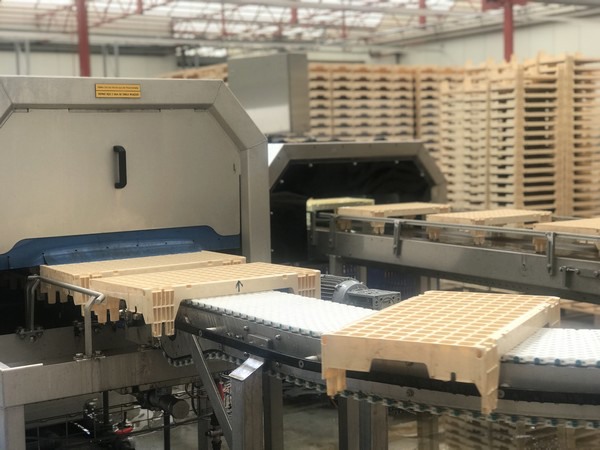 Na het wasproces worden de trays nog gecheckt op defecten. Alle defecte trays worden geëlimineerd en nogmaals gecheckt of ze terug het productieproces in kunnen. Na de inspectieronde op defecten worden de trays weer gestapeld en worden ze in stapels op pallets klaargezet voor hergebruik.