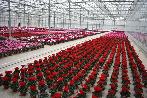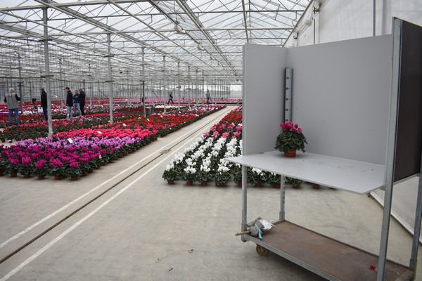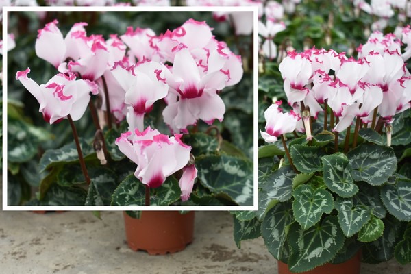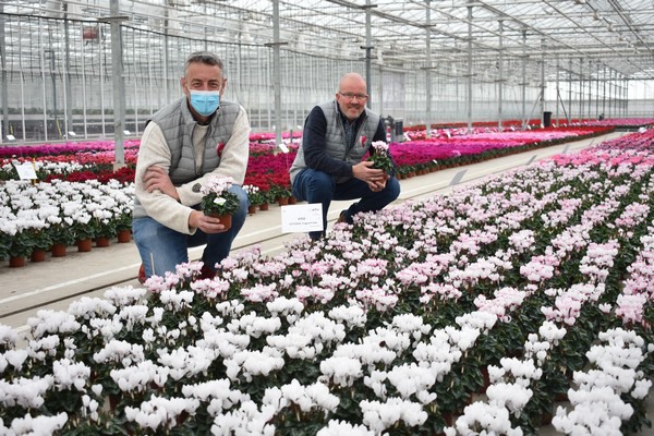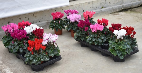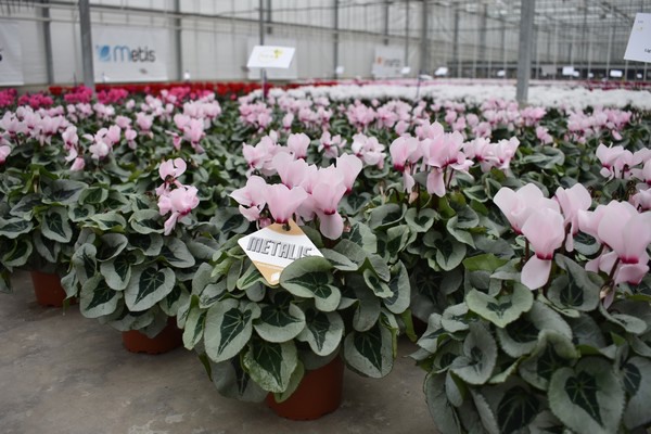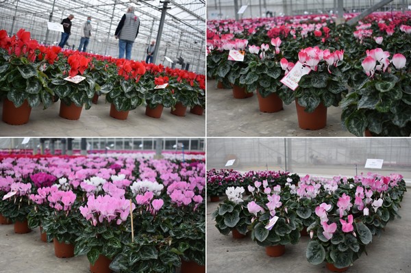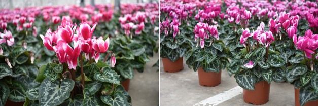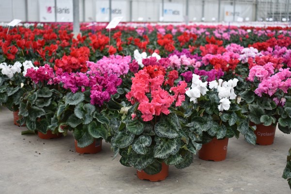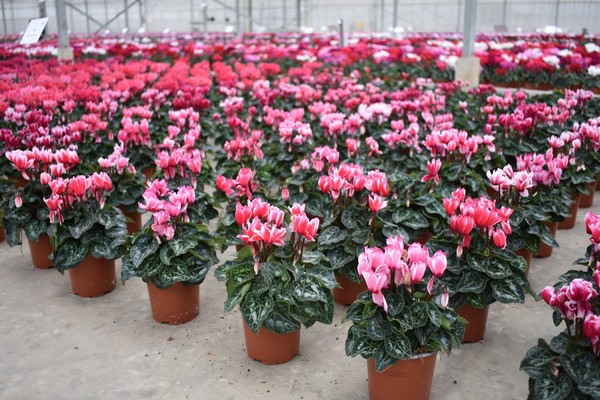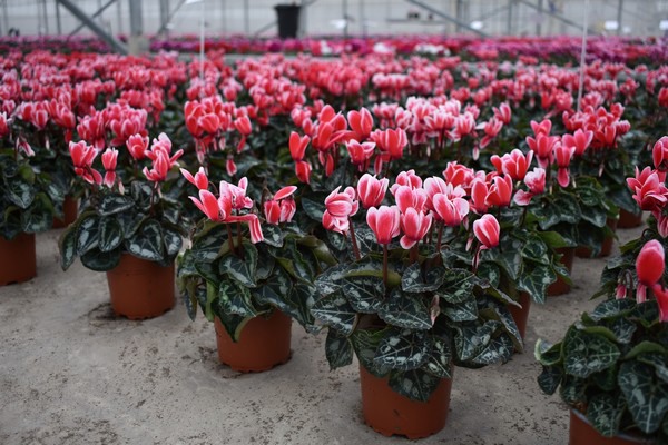 Een aantal van de Morel-cyclamen die commercieel worden geteeld door Preesman.