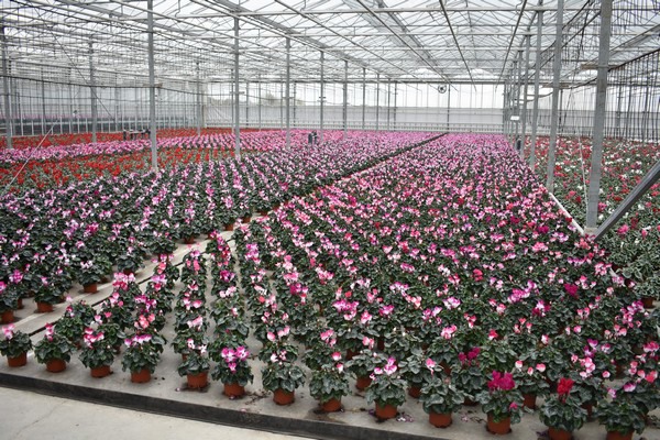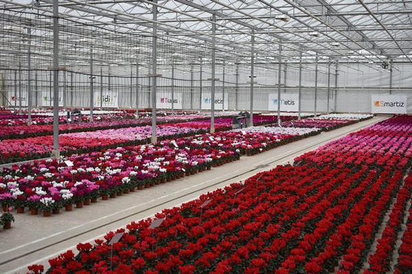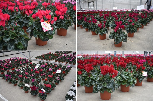 Een aantal van de Morel-cyclamen die commercieel worden geteeld door Preesman.