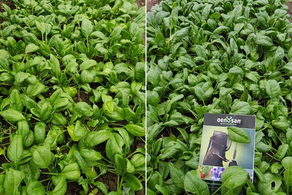 Spinazie voor (links) en na (rechts) het gebruik van Oenosan