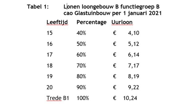Aangezien het wettelijk minimumloon gaat stijgen per 1 januari 2021, veranderen ook de lonen voor piekarbeiders, studenten, scholieren & vakantiekrachten en werknemers met een arbeidsbeperking per deze datum. Daarnaast is functiegroep B van loongebouw B van de cao Glastuinbouw deels gekoppeld aan het wettelijk minimumloon. Hieronder vindt u de bedragen per 1 januari 2021.
