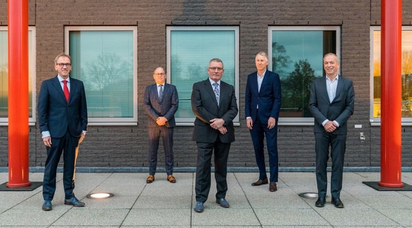 Vlnr.: John Quist (CEO Unica), Jos Moling (Van Kempen), Marcel van Kempen (Van Kempen), Bert Moser (CFO Unica) en Jan Vliet van Zante (directeur Van Kempen)