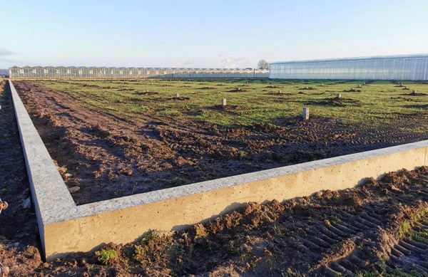Het fundament is gelegd, de komende weken zal Kerklaan de kas installeren. Van binnen wordt deze voorzien van een lavavloer en energieschermen. In week 16 moet het geheel voltooid zijn.