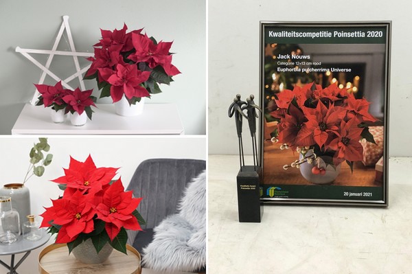 Handelskwekerij Nouws heeft de Glastuinbouw Nederland Kwaliteitscompetitie Poinsettia 2020 gewonnen met de Christmas Universe van Selecta.