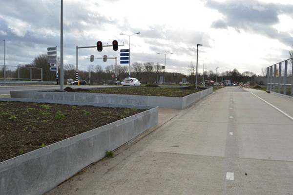 Dit moet een echte selfieplek worden, als de bloemen in de bloembakken op het viaduct boven snelweg A6 bloeien.