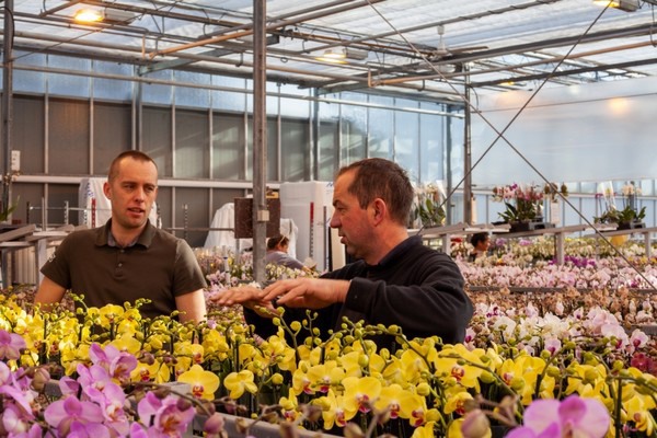Technisch gezien moet er de komende maanden nog het een en ander uitgedokterd worden. De bedoeling is dat er vanaf september water van 90 graden door een buis van de chrysantenkwekerij naar de orchideeënkwekerij stroomt, en dat door de andere buis water met een zo laag mogelijke temperatuur terugstroomt. Wilco: "Een uitdaging is nog dat we computerbesturingen van onze bedrijven -we werken beide met een verschillend systeem- met elkaar kunnen laten communiceren.”