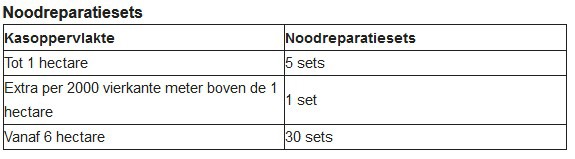 Ook zijn noodreparatiesets nodig, hoe groter de kas, hoe meer.