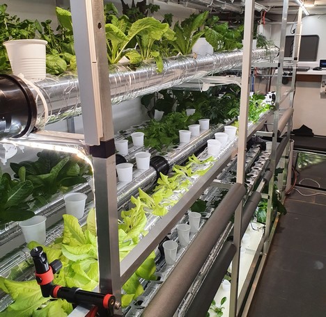Maar eerst nog even een kort hoe het ook alweer zat. Het gaat om een kas van 5 meter lang, 2 meter breed en 2 meter hoog. De kas is uitgerust met door Theo zelf uitgezochte Chinese Ledlampen, regenwater wordt opgevangen in IKEA stapelbakken en in de kas gebruikt én misschien wel het meest opvallend: de CO2 voor de planten komt uit Theo's huis. De CO2 die Theo in huis uitademt, wordt gemeten en bij een oplopende concentratie overdag (> 700 ppm) gaat een ventilator de lucht uit het huis wegzuigen. Het wordt dan beschikbaar gesteld voor de kasplanten en die doen zich er vervolgens meetbaar te goed aan, zo ziet Theo tevreden.