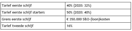 Door de coronacrisis kunnen ook investeringen in speur- en ontwikkeling onder druk komen te staan, terwijl ontwikkeling en innovatie juist nodig is om uit de crisis te komen. Het kabinet heeft daarom besloten om in 2021 extra budget beschikbaar te stellen voor de WBSO. Dit budget wordt gebruikt voor een tijdelijke verhoging van de afdrachtvermindering in 2021. Deze verhoging geldt voor het starterstarief en het tarief in de eerste schijf. De verhoging van de afdrachtvermindering moet met name innovatieve mkb-ondernemingen en starters een extra stimulans geven om ook gedurende 2021 te blijven investeren in S&O.