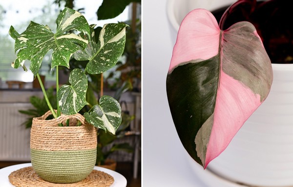 Links een Monstera Deliciosa 'Thai Constellation' (foto: firn-shutterstock); rechts een Philodendron Pink Princess (foto: ty-lim-shutterstock)