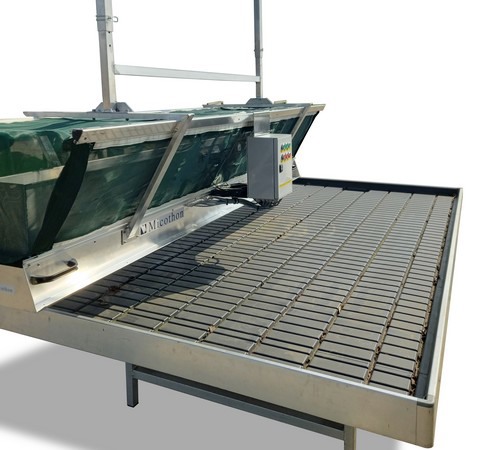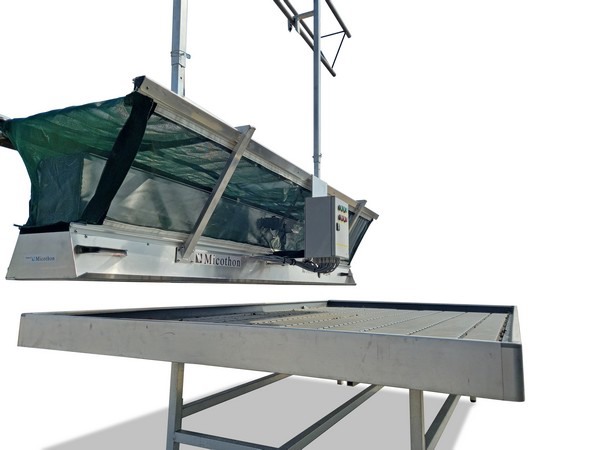 Vandaar dat Micothon voor hem een 5 meter brede oplossing heeft ontwikkeld die over de containers beweegt en de insecten met vacuümtechniek opzuigt. Zelfs 's nachts kan de installatie automatisch door de kap bewegen. De machine hangt iets boven de container en de continue sterke luchtstroom zuigt de insecten op en vangt ze op in het speciale filter.