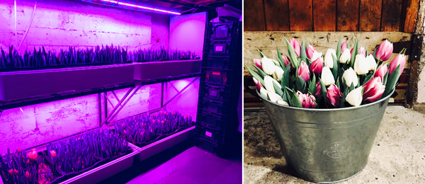 Het is lente in Montreal en buiten zullen de tulpen pas over een maand gaan bloeien, maar in een kleine indoor farm La Ferme Nomade doen ze dat nu al. La Ferme Nomade is een nieuw bedrijf opgericht in 2018 en broeit de tulpen m.b.v. LED voor met name Valentijnsdag en Pasen. Bloemen vinden hun weg naar lokale markten en bloemisten.