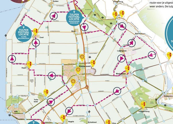 Het Tulpenfestival heeft een ‘coronaproof’ autoroute uitgezet van ongeveer 88 kilometer. Een prachtige autoroute langs de vele tulpenvelden in de Noordoostpolder.