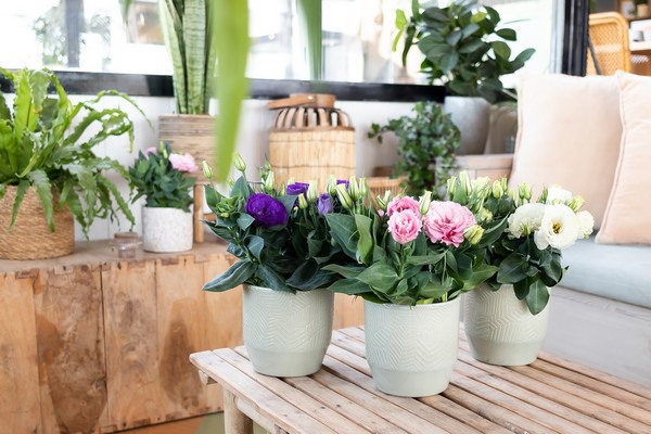 De afgelopen jaren stijgt de populariteit van de dubbelbloemige Lisianthus als snijbloem. Veredelaar Takii vertaalt deze populariteit met de introductie van Julietta in een compacte potplantenserie. Julietta is vanaf deze week verkrijgbaar bij kwekers SV.CO en Bosplant. SV.CO teelt Julietta in potmaat 9 en 12cm en biedt deze aan onder het label ‘Lisi Lova’. Bij Bosplant is Julietta verkrijgbaar in potmaat 10,5cm. Julietta is beschikbaar in drie kleuren: puur wit, zachtroze en helderblauw.