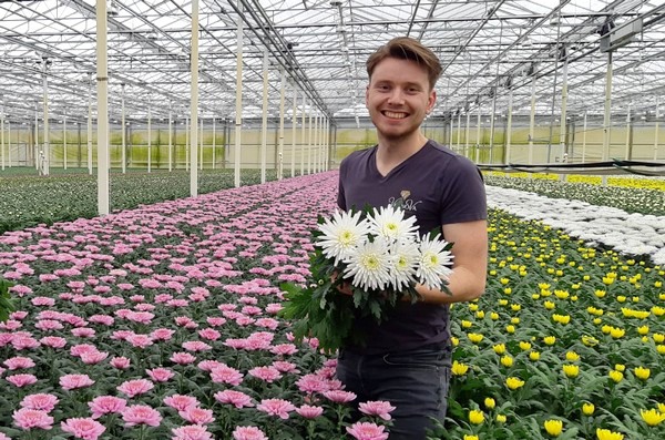 Tholen - Topspin is dé nieuwe witte chrysant van Dekker Chrysanten en dat telers er vertrouwen in hebben mag wel duidelijk zijn. Niet minder dan drie vooraanstaande kwekers hebben de chrysant gelijktijdig in het assortiment opgenomen, te weten Dekker Chrysanten, Arcadia Chrysanten en Van Leeuwen Flowers. We vroegen die laatste, Dennis van Leeuwen, naar zijn ervaringen met Topspin tot nog toe.