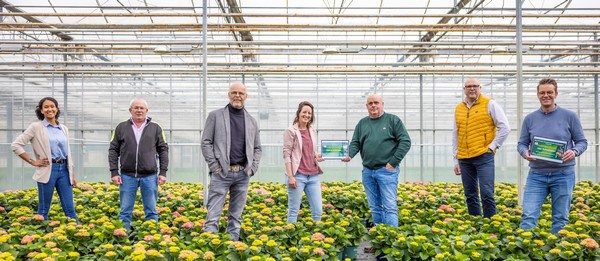 Vlnr Evelyn Beckers (Royal FloraHolland) – Cees Luling (Royal FloraHolland) – Michel Verbeek (Royal FloraHolland) – Sandra Vijverberg (Magical Hydrangea) – Lendert de Vos (Lendert de Vos) – Leendert van Muijlwijk (P van Geest) – Alex Schoemaker (Alex Schoemaker)