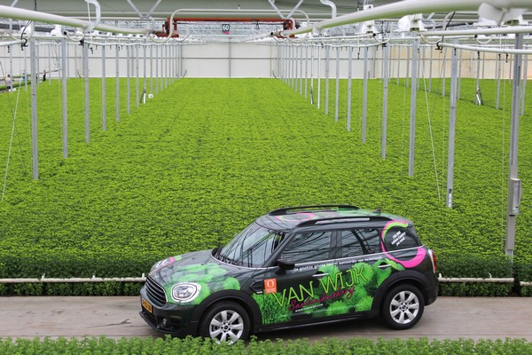 Bij gelegenheid van 10 jaar Country, het kenmerkende santiniras van Dümmen Orange met de groene bolletjes, startte kweker Kees van Wijk in januari vorig jaar een bijzondere actie. Onder trouwe klanten verlootte hij telkens vier weken vrij gebruik van een BMW Mini Country, een idee dat ontstond t.g.v. zijn onder collega’s en dorpsgenoten gebezigde bijnaam ‘Kees de Countryman’.