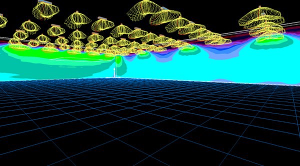 Een voorbeeld van een 3D lichtplan. Uniformiteit is van groot belang.